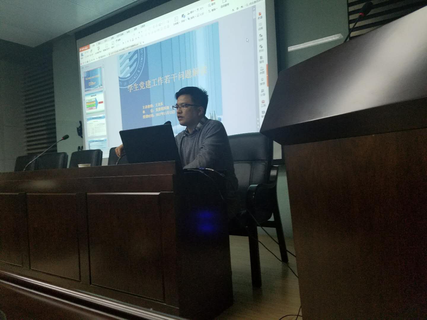 2017年11月13日晚上7点,第四次党课培训在实验楼2A-206顺利举行。本次课程有幸邀请到了学校党委统战部部长助理王念东老师,为各位积极分子讲解学生党建工作的若干问题。