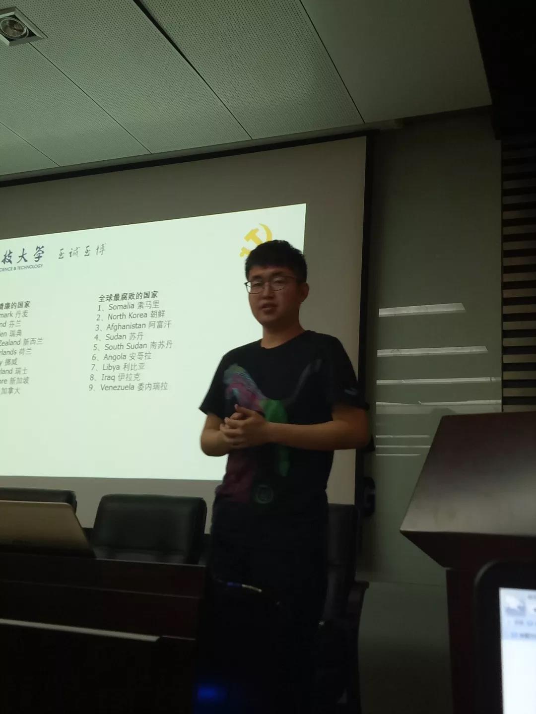 首先电信研17学生第一党支部书记张晓飞通过讲述一些反腐倡廉的知识让各位入党积极分子端正入党的态度,接着和各位入党积极分子进行互动,通过宣扬反腐倡廉让入党积极分子端正入党动机。