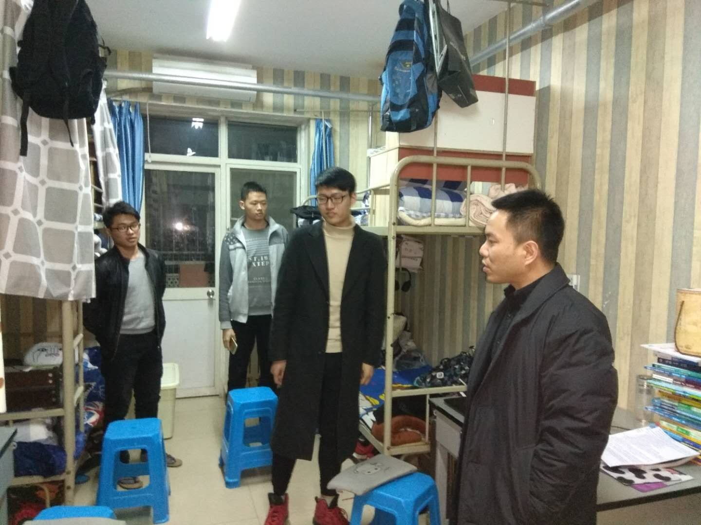 细化措施,全面排查安全隐患。开学第一周,电信学院全体学工干部深入学生宿舍开展排查,在走访过程中与学生进行谈心谈话,一方面了解学生思想动态,一方面全面开展违禁电器、管制刀具、私拉电线、插座布线等问题的检查,在对危害进行解释的同时,引导学生遵守校规校纪确保宿舍整洁安全。