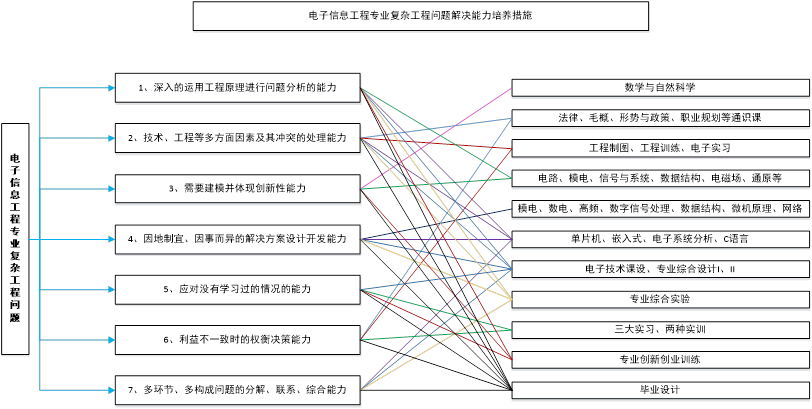 电路分析、信号与系统、通信原理、电磁场与微波技术、数据结构与算法等课程及其实验形成学生专业领域复杂工程问题的表述、抽象建模与基本分析能力;