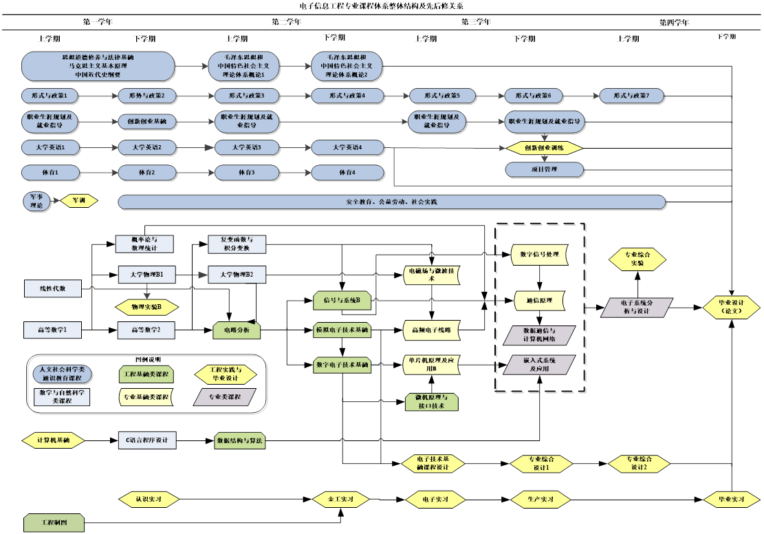 图1 电子信息工程专业课程体系整体结构及先后修关系图