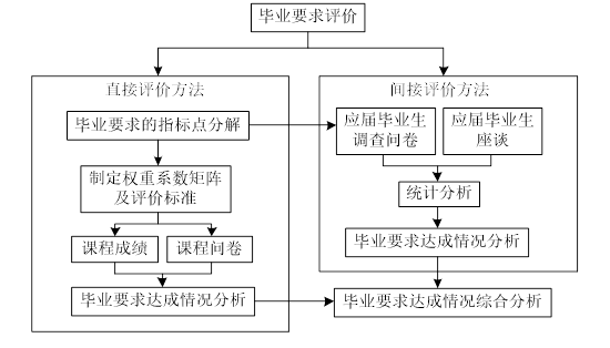 b.毕业要求的间接评价方法,间接评价由学院本科教育教学指导委员会组织进行,主要包括:面向应届毕业生进行的毕业要求的调查问卷和抽样部分应届毕业生的座谈访问。