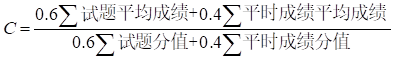 平时成绩40%:考勤、作业、大作业和课程实验,根据实际课程考核方式的不同,划分考勤5%、作业成绩10--20%、大作业成绩10--20%、实验成绩20%,总之平时成绩总数占到40%;试卷成绩60%。各类考核转换成百分制,乘以相应的比例构成最终成绩。