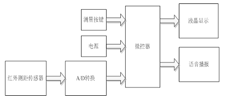 现代科学技术的发展进入了许多新领域,而在测距方面先后出现了激光测距、微波雷达测距、超声波测距及红外线测距。其中激光测距是靠激光束照射在物体上反射回来的激光束探测物体的距离。由于受恶劣的天气、污染等因素影响,使反射的激光束在一定功率上探测距离比可能探测的最大距离减少一半左右,损失很大,影响探测的精确度;微波雷达测距技术为军事和某些工业开发采用的装备和振荡器等电路部分价格昂贵,现在几乎还没有开拓民用市场;超声波测距在国内外已有人做过研究,由于采用特殊专用组件使其价格高,难以推广;红外线作为一种特殊的光波,具有光波的基本物理传输特性—反射、折射、散射等,且由于其技术难度相对不太大,构成的测距系统成本低廉,性能优良,便于民用推广。红外测距传感器是一种非接触式的测距传感器,由于其结构简单、抗干扰性强、成本低等优点,在测量测绘上得到广泛的运用。为了实现物体近距离/高精度的无线测量,采用红外传感器采集距离数据,微控制器作为处理器,编写A/D转换、显示以及语音播报,开发了一套便携式的红外距离测量系统,系统可以实时显示所测的距离,并且可以进行语音播报。